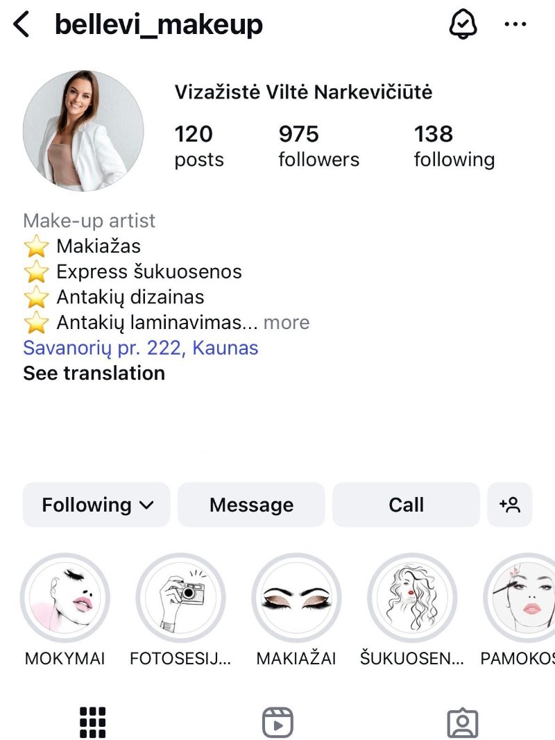 Grožio srityje dirbu penktus metus, nuolatos tobulinuosi kursuose bei esu būsima kosmetologė. Makiažas kuriamas tik su aukščiausios kokybės kosmetika, tinkančia kiekvienam odos tipui net ir probleminei odai.